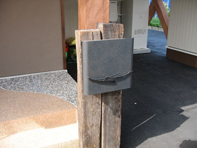印象としてアンティークな趣のご要望でしたので古枕木とロートアイアンの表札、ポスト、ランプを設置し、十勝では、珍しくて高価なオールドブリックを使用しました。
