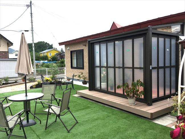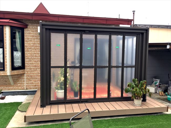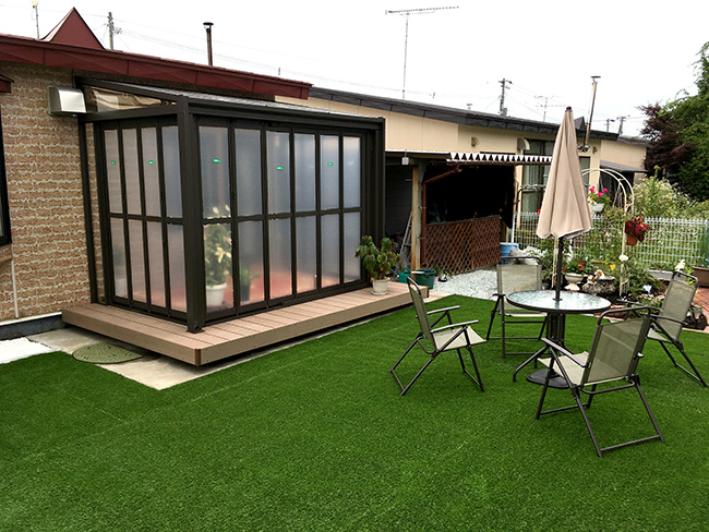 住宅からお庭との動線の一部としてガーデンルームを提案しました。
