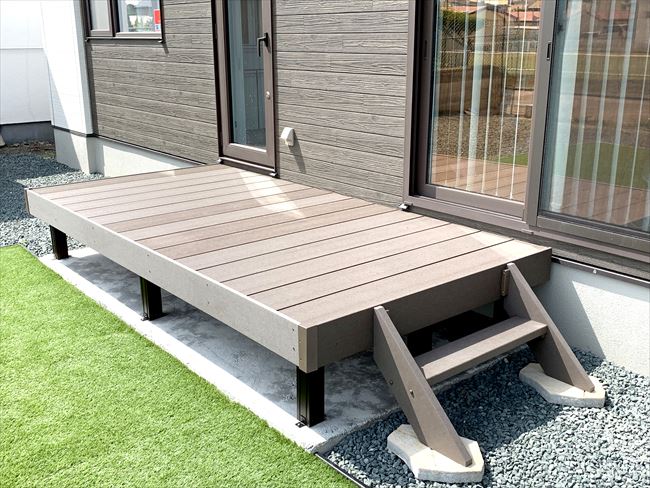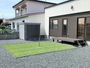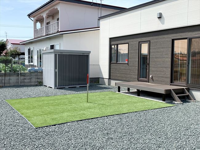 南側にはドックランと人工芝、リビングからの繋がりとして人工木のデッキを設置しました。