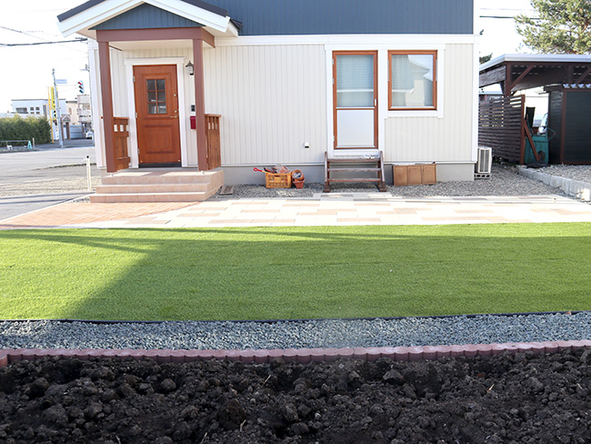 住宅の雰囲気にぴったりあうよう、玄関前はすっきりとしたデザインになりま した。