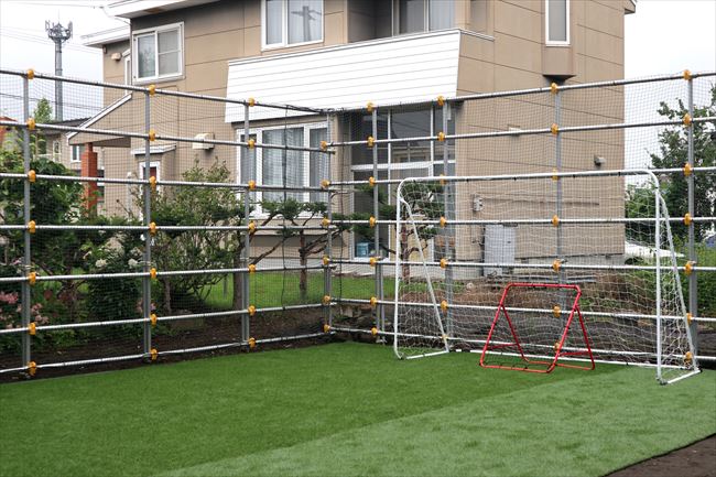 お子様が自由にいつでもサッカーの練習ができる環境づくりの一環として、サッカー場を敷地内に作りました。意外に安い費用で完成させることが出来ました。