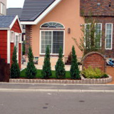 おうちが背の高い建物で、アプローチの所に目隠し的な塀があればという事でした。植栽もお家にあうようデザインをしました。