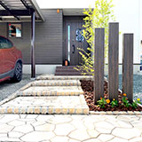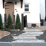 お家の顔であるアプローチを明るく植栽を併用することで玄関前に潤いをもたせました。