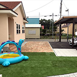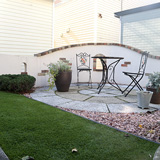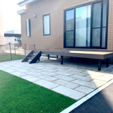 できるだけ手間のかからない庭として芝から人工芝にかえ、お庭でくつろげるスペースを取り入れました。