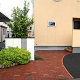 アプローチは 玄関前に駐車スペースがあり 玄関までの動線が生かせず駐車スペース 横に道内産レンガを使用し作りました。