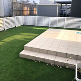 外からの目線が気にならないお庭がご希望という事でしたので、メンテナンスフリーな人工木を使ったフェンスを設置しました。