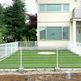 ドッグラン内には人工芝を敷設し、わんちゃんがのびのびと遊べるお庭に。ドッグポールも設置しました。